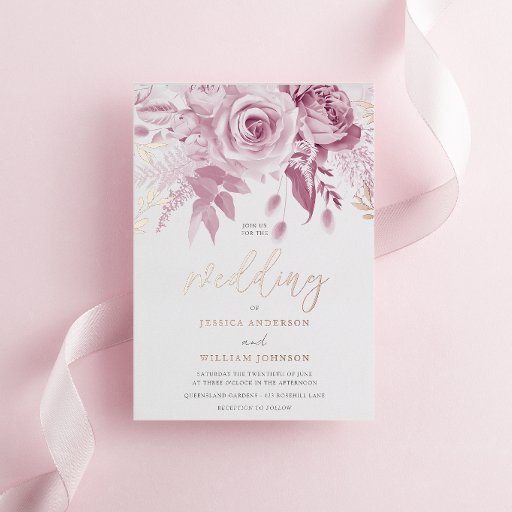 Divine Pink Rose Wedding Rose Gold Foil Invitation