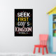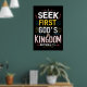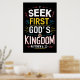 Featuring the words seek first Gods kingdom in bold typography, surrounded by intricate religious symbols and illustrations. Divine Quest: Pursuing Gods Kingdom