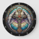 This magnificent wall clock showcases a detailed stained glass design of a cross with beautifully outstretched wings, rendered in a spectrum of soft blues, purples, and golden tones. The intricate patterns and ethereal glow create a truly inspiring and serene focal point, perfect for adding spiritual elegance to any home or sacred space. Edit colour of the clocks numbers in the Design tool to your favored colours.