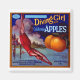 Vintage fruit crate label for Diving Girl Brand Apples from California.
