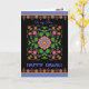 A pretty Diwali Greeting Card for a Son, with a brightly colored Rangoli pattern and a border of Orange, Pink and Blue Flowers and a Rangoli motif, from a hand-painted paper collage by Judy Adamson. Part of the Posh & Painterly 'Rangoli' collection.