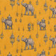 The *Diwali Elephant in Golden Field Toile de Jouy* pattern features ornate elephants adorned with lanterns and floral motifs on a radiant saffron backdrop, capturing the festive spirit and regal charm of India’s luminous celebration. Perfect for this theme DIY crafts and projects.