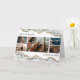 An easy to personalise 7 photo collage is set on a white background that has a luxurious and beautiful faux geode / crystal natural gemstone look and has two flowing script fonts above and below it for your personalised wording.
