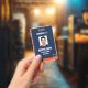 This simple and professional design features a black background. The template is easily customisable, just staff name, job title, employee ID. The back has your contact information and instructions for returning if found.