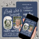 Look who's turning 65! Invite family and friends to an elegant 65th birthday celebration for him or her with custom 2 photo party invitations. Pictures and wording on this template are simple to personalise. The navy blue and white colours for the background, text and number outlines can all be customised by using the Zazzle design tool. (IMAGE PLACEMENT TIP: An easy way to position a photo exactly how you want is to crop it before uploading to the Zazzle website. If you need additional help, please message me :) The design features two pictures of your choice, modern script calligraphy, and stylish vintage art deco typography. The unique gender neutral design is also suitable for either a man or a woman. Happy Sixy-fifth Birthday!