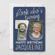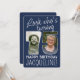 Look who's turning 75! Invite family and friends to an elegant 75th birthday celebration for him or her with custom 2 photo party invitations. Pictures and wording on this template are simple to personalise. The navy blue and white colours for the background, text and number outlines can all be customised by using the Zazzle design tool. (IMAGE PLACEMENT TIP: An easy way to position a photo exactly how you want is to crop it before uploading to the Zazzle website. If you need additional help, please message me :) The design features two pictures of your choice, modern script calligraphy, and stylish vintage art deco typography. The unique gender neutral design is also suitable for either a man or a woman. Happy Sevety-fifth Birthday!