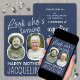 Look who's turning 80! Invite family and friends to an elegant 80th birthday celebration for him or her with custom 2 photo party invitations. Pictures and wording on this template are simple to personalise. The navy blue and white colours for the background, text and number outlines can all be customised by using the Zazzle design tool. (IMAGE PLACEMENT TIP: An easy way to position a photo exactly how you want is to crop it before uploading to the Zazzle website. If you need additional help, please message me :) The design features two pictures of your choice, modern script calligraphy, and stylish vintage art deco typography. The unique gender neutral design is also suitable for either a man or a woman. Happy Eightieth Birthday!