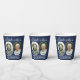 Look who's 90! Add an elegant personalised touch to 90th birthday party decorations for him or her with stylish custom photo paper cups. Pictures and wording on this template are simple to customise. The navy blue and white colours for the background, text and number outlines can all be customised by using the Zazzle design tool. (IMAGE PLACEMENT TIP: An easy way to position a photo exactly how you want is to crop it before uploading to the Zazzle website. If you need additional help, please message me :) These cups feature two pictures of your choice, modern handwritten style script calligraphy and classic vintage art deco typography. The gender neutral design is also suitable for either a man or a woman. Happy Ninetieth Birthday!