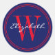 DIY Choose Your Own Colours Name Monogram Envelope Seals, initial colours blue background, red initial, red circular frames, white name ==========