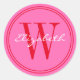 DIY Choose Your Own Colours Name Monogram Envelope Seals, initial colours hot pink background, red initial, red circular frames, white name ==========