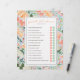 This bridal shower template features the "guess who bride or groom" game, with 14 editable yes or no questions. Optional photo on the back side. Personalise all of the text, even remove the "B" and "G" circles to make a fill in the blank version of any game. Once you are in the editor you can change the entire game title and questions including font style, colour, size, background colour, even the scale of the florals to match your event.