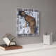DIY dog photo with grey and black plaid frame Square Wall Clock