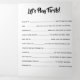 A black and white template with no pictures, images or theme just black decorative script fonts and three games - baby bingo, word scramble and let's play firsts - for your guests to complete on the day. Personalise the cover with any age and wording and use the customise it icon to add your own images, picture or photos.