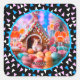 Adorbs little hamster in the candy filled lollipop garden of a gingerbread house, Black sticker with a border of cut paper and colourful triangles.