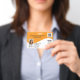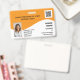 A plain but striking horizontal orientation design that has a wavy line in the middle divides an orange from white background on which templates for your company name; employee details and business address appear. There is a template for your company logo and your employees photo (in a vertical placement) too. Personalise the template to suit your requirements and change the background colour behind the wavy divider to any of your personal choice.