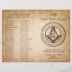 Create your own custom masonic program or folded roll call stationery on an easy to use rustic parchment DIY template. The unique freemason design features original art by Raphaela Wilson which includes the vintage aged paper, square and compass symbol, master mason jewels and trowel. The old scroll paper texture and masonic symbols have a rustic, antique burned edges look, and all text elements can be personalised with any custom wording - even add lodge officer photos / pictures if you wish, or change the elegant typography to fonts that best suit your style. These simple masonic programs can be folded and used for a roll call ceremony, the annual installation of officers, invitations, brochures, stained letterhead, and even as everyday freemason stationery for letters. Category: personalised masonic folded roll call stationery; custom freemason paper sheet; and masonic installation program template ideas. Masonic themed party colours: dark brown, light tan, beige, burnt orange, yellow ivory white, and black.