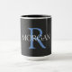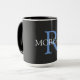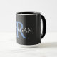 Personalise this black Coffee Mug with your Monogram and Name In Blue and White Text. Click “Customise” to change colours and type styles.