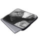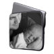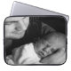 This laptop sleeve looks exactly as it does in picture. I actually thought is was too small until I put my laptop in it. It's a bit snug, but it fits. Figure it will stretch a bit, hopefully seams hold. Them seem good for now. I didn't have any personalization done, looks great as is.