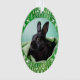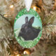 Name on one side with the words "Christmas Time with". Your bunny's photo appears in a Green  ring with white Christmas designs drawn in white chalk.