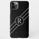 DIY White Monogram in Circle, Diagonal Lines Black iPhone Case
