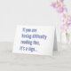 Words are given the anaglyph text effect which makes it hard to read so don't stare too hard at it. Message on front reads "If you are having difficulty reading this, it’s a sign..." while Message inside reads "... You need glasses. Happy 30th Birthday!" Funny caption to insinuate that the birthday boy or girl is getting old. Design by Rusty Doodle.