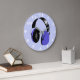 A light blue Wall Clock with white numerals and a digital illustration of blue headphones. Available in other options. Visit our Store for more Wall Clocks and other Home Accessories.