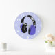 DJ BLUE MUSIC HEADPHONES DESIGN LARGE CLOCK