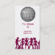 A fun business card for a DJ. It features a disco ball on the top above a group of dancing people. The text on front and back is customisable.