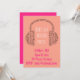 A funky, cool, retro and hip music themed birthday party invitation suitable for a teenage girl with a graphic of a musical headphones against a hot pink background. The text is fully able to be customised to include your own personal details.