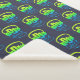 DJ blue and bright green on dark blue repeat headphones and name blanket. Personalise with your own name, currently reads Stevie H. Ideal for DJ's to wear to gigs and music fans to wear whilst playing their favourite tunes. A great fun gift idea. Original art and design by Sarah Trett for www.mylittleeden.com