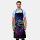 This cooking apron featuring a DJ chameleon sets the tone in any kitchen. The combination of neon colors, purple glow, and musical vibe gives this apron a modern and energetic feel. The chameleon wearing headphones appears ready to cook and dance.