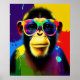 DJ Monkey Print, Stylish Colourful Glasses, Chimp Poster
