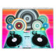 DJ Turntable with vinyl music albums records for disc jockey with coloured circles and balls pop art.