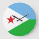 The Djibouti flag is a horizontal bicolour with a white triangle on the left side which contains one star. The used colors in the flag are blue, green, red, white. The proportion of the Djibouti flag is 2:3. The Flag of Djibouti was adopted in 1977. The first use of the current flag design was in 1977. The last change to the current Djibouti flag design was in 1977.