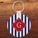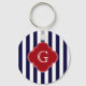 Dk Blue White Stripe Cranberry Quatrefoil Monogram Key Ring