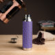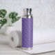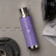 Light purple, diagonal stripes in the shape of the double helix of DNA streak across a darker purple background creating a lovely, subtle pattern for any biologist, geneticist, or other participant or fan of STEM fields. Customise the monogram with your initial to create a water bottle that is uniquely yours.
