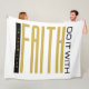 This fleece blanket features a fatimi/lastica/telegraf print font with gold and black letters with a vertical/horizontial typograph style displaying the phrase "Do It With Faith In Your Lord" in this biblical quote theme. This Blanket is made from 100% buttery soft and cosy polyester fleece with edge-to-edge vibrant full colour sublimation printing and double edge stitching with a off-white coloured back machine washable.