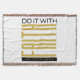 This throw blanket features a fatimi/lastica/telegraf print font with gold and black letters with a vertical/horizontial typograph style displaying the phrase "Do It With Faith In Your Lord" in this biblical quote theme. This Blanket is made with from 75% cotton and 25% polyester with a very soft feel hand washing recommend.