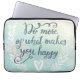 The sleeve is made of nice feeling material and seems very durable. I'm not sure how easy it'll be to clean, but the construction seems sound and the fabric is quick thick. I also like the double zipper. The printing is lovely and appears durable. The white on black contrast is nice, and the design very elegant.
