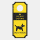Door sign to let people know to STAY OUT! Do Not Disturb sign in yellow and black with a dog and "dog inside."