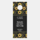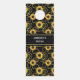 Door hanger with an elegant and stylish pattern. Pretty yellow sunflowers and green leaves surrounded by delicate gold chains. Black background.