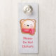Door hanger with a cute and adorable bear face set on a cookie base. Wearing a red and white striped scarf.