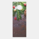 Door hanger with a rustic photograph of a brown wooden table with pinecones, pine needles, snow, and Christmas ornaments. Festive and lovely.