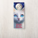 AI generated image of a white cat with beautiful blue eyes against a starry sky and the words Please do not Disturb on the front und You are Welcome on the back side.