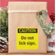 Small Caution Parody Warning Sticker. Do not lick sign. Add some humour to your environmental health and safety program.