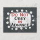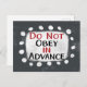 Bold text reading "Do Not Obey In Advance" is centred against a grey background. The black and red text sits on a white rectangle with large textured white dots around it, providing a playful contrast against the solid colour backdrop. This is Lesson #1 from "On Tyranny" by Timothy Snyder.