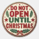 Bring warmth and cheer to your holiday season with our “Do Not Open Until Christmas” sticker design. Perfect for anyone who loves the festive spirit of Christmas. A fun addition to your holiday cards or Christmas presents.