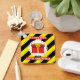 An illustration of a simple red gift box with the text "Do not open until Christmas", and black and yellow striped background. Gifts are the best way of giving surprise to your family and friends. This design is good to be printed on a sticker or gift wrapper for the presents put under the Christmas tree.