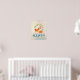 A poster with a cartoon drawing of a cute orange fox sleeping peacefully with little red hearts. A green foliage wreath behind. Text says: "Do what makes you happy". A rustic cream coloured background with a trendy pattern of faint geometric shapes.