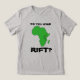 This geology-themed athletic tank features the continent of Africa, with the East African Rift Zone demarcated. The phrase "Do you even rift?" is a parody of a popular Internet meme.